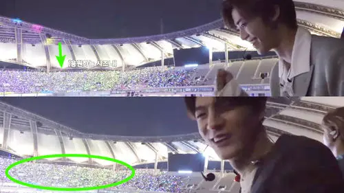 JISUNG took a selfie against the wave of green lights and said, "Czenies (NCT's fan club NCTzen's nickname) look way too cute right now. I love the way they are all shaking their light sticks about like this. So adorable!"