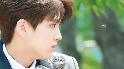 Soon, YOUNGHOON noticed that there was a bee around him.A few seconds later, the bee went right next to YOUNGHOON, startling him.