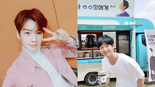 Cha Eun-woo of K-pop boy group ASTRO showed his support to actor Jung Hae In by sending him a truck loaded with delicious snacks to the set of his upcoming film 'Start' (literal title).