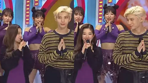 But when they do, they usually lump them all together and make them stand next to each other so that they could save time and go through them more efficiently. For this reason, LEO had to stand next to IRENE while the members of Red Velvet sang and showed the best and the most catchy part of their 'Zimzalabim' choreography. IRENE first had no problem demonstrating the choreography, but as soon as LEO started to mimic some of the moves, she got little distracted and began to chuckle. When IRENE smiled, LEO also laughed as if he was embarrassed that he got caught imitating Red Velvet's choreography.