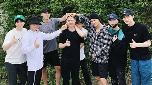 In order to bid goodbye to D.O., all members of EXO including LAY came together and took group photos.