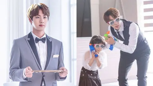 If they choose the second option, they will each be provided with different tasks and asked to make decisions on the members' behalf in order to help them live their lives as a hotelier, pianist, and other things. When JIN turned into a hotelier, one of his characters from the game, many of his fans just lost their cool since he not only looked phenomenal in his uniform, but also pulled off the role with utmost perfection. JIN did everything he could to attend a child, one of his customers' needs starting from eating a lollipop sitting next to her to engaging in a water gun fight. Jin even sprinted to the beach when his customer disappeared and looked everywhere for her as any concerned and responsible hotelier would do.