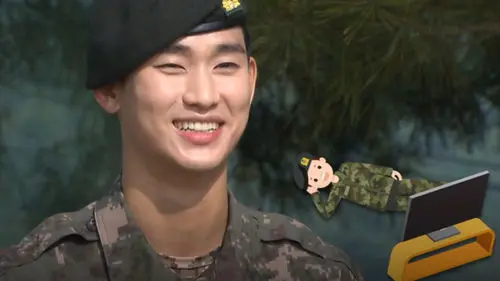 On July 2 episode of SBS' television show 'Han Bam', Kim Soo Hyun was spotted officially being discharged from the military.