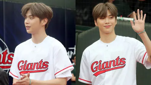 Kang Daniel also threw a ceremonial first pitch for the baseball game between LOTTE Giants and NC Dinos which took place at the stadium on the same day.