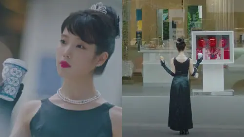 On July 21 episode of tvN's drama 'Hotel Del Luna', the production team raised the viewers' expectation towards the drama by unveiling the preview of its next episode at the end of the broadcast. In the preview, IU was enjoying her drink in front of what it seems to be a jewelry store while staring at something through the window. The little tiara on her head, the double strand pearl necklace on her neck, and the long black gloves she was wearing made her look like a princess who loves enjoying her breakfast Audrey Hepburn-style. But the viewers could not help but smile after seeing these pictures because IU still looked pretty adorable even though that was clearly not what she was going for.
