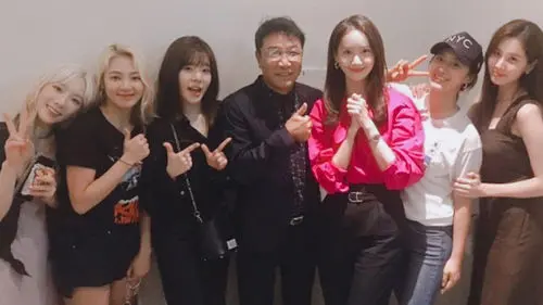 The picture was of six members of Girls' Generation including Taeyeon, Hyoyeon, Sunny, Yoona, Yuri, and Seohyun standing alongside Lee Soo-man with a broad smile on their face.