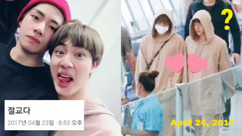 Back on April 23, 2017, V shared a photo of himself and JIN on the group's Twitter.