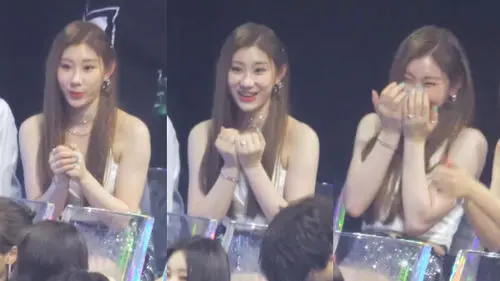 During the event, the members of ITZY enjoyed the performances by various K-pop acts while sitting on their seat behind IZ*ONE.