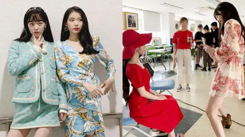 The photos showed Sulli enjoying a break with IU from shooting IU's drama 'Hotel Del Luna'.
