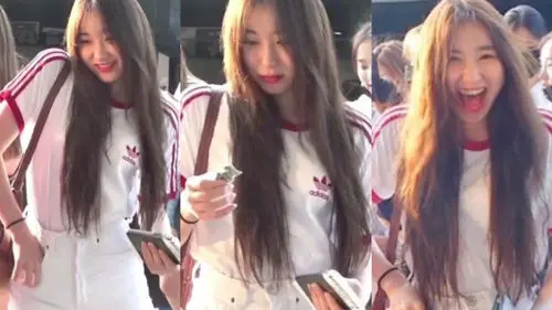 While waiting, Lee Chae Yeon put her hand in her pocket on the right side of her shorts.