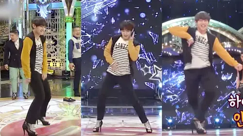 When V started walking, another host Kang Ho-dong noticed that V was not having any difficulties at all in them and asked, "Do you feel comfortable in them?",