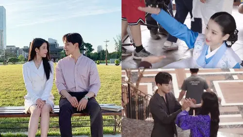 During another break, IU and Yeo Jin Goo were seen high-fiving each other in unusual ways again.