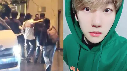 A moment later, BAEKHYUN got out of the van with the help of the staff.