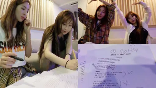 DARA's Twitter post included printed papers of lyrics for 2NE1's hit song 'I DON'T CARE', making BLACKJACK all around the world very excited.