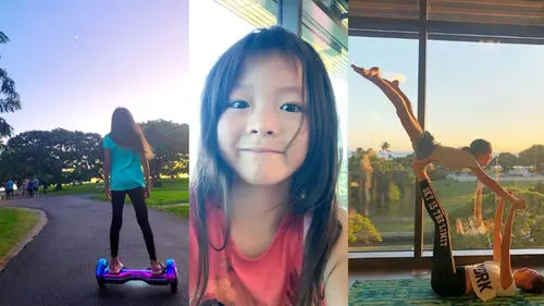 The photo was of the back of a girl riding a hoverboard in a park in the evening.