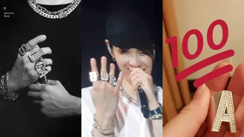 On this day, SUGA showed off his four freshly-made custom rings in the shape of each letter of his name.
