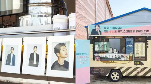 There were photos of a snack truck that was decorated with Song Joong Ki's photos.