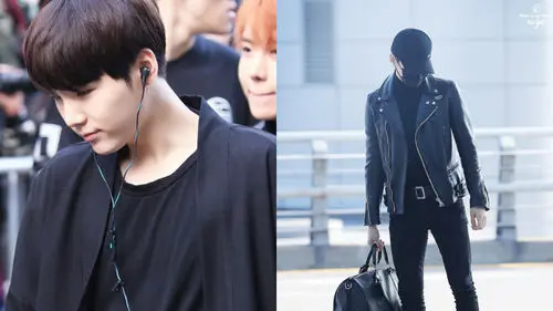 SUGA loves wearing black; at least one item of his outfit is always black, but he very often goes all black as well.