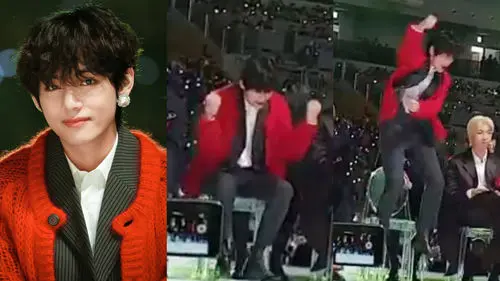 V made a yes gesture, then jumped right out of his seat with the brightest smile on his face.