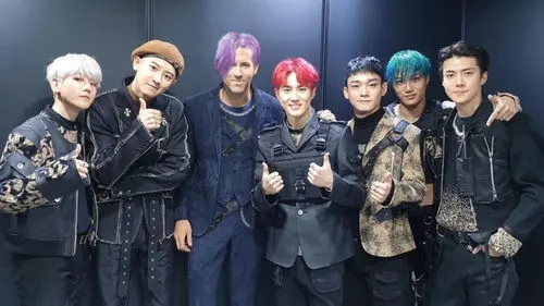 This time, he had photoshopped his short dark brown hair to purple long hair that matched EXO members' colorful hair.
