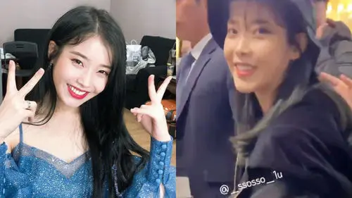 Even though it was hard for her to move due to the crowd, IU still smiled and posed for fans' camera.