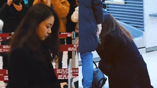 After the getting her flight ticket, Han Seung Yeon greeted her fans and reporters with a bright smile on her face, managed to hide her sadness and hold back tears. Although the reason behind her tears are uncertain, many fans believed that Han Seung Yeon is still having a hard time after her fellow member Koo Ha Ra's recent passing. Fans commented, "It's so hard to see her trying to hold emotions in. "Stop filming her, for God's sake.", "Stay strong, Seung Yeon. We are here for you.", and more.