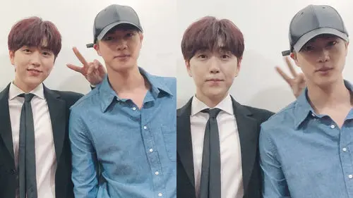 SANDEUL said, "There was this time when JIN and I were at a music event. At the end of the event, all artists stood on stage together. That was when I met JIN for the second time."