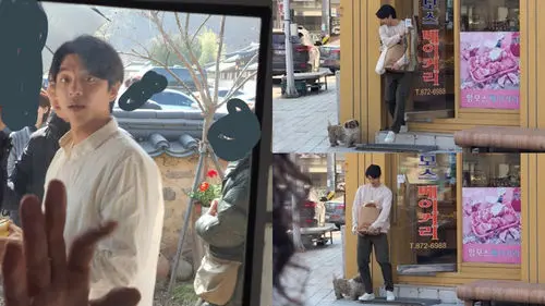 In the last photo, Gong Yoo was walking around 'Cheongsong Hanok Village' with his staff.