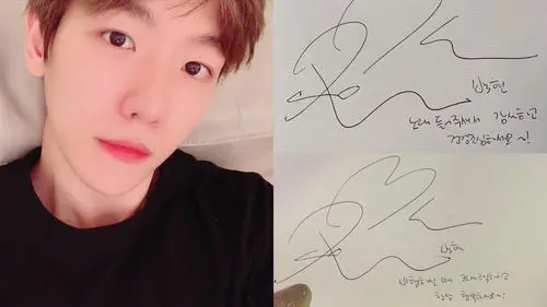 Under her husband's autograph, BAEKHYUN had written a message that said, "Thank you for listening to our songs. Make sure to keep yourself healthy at all times!"