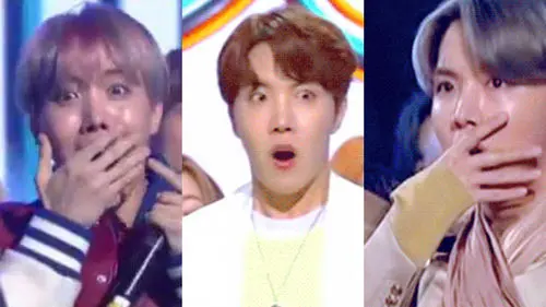 J-HOPE of K-pop boy group BTS' adorable facial expression when the group took music show trophies went viral online.