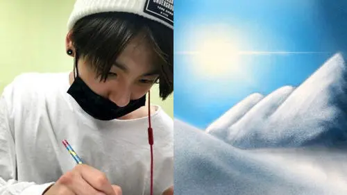 What made this day extra special is that JUNGKOOK showed ARMY some of his new artwork. He first shared a beautiful drawing of the sun and snowy mountains and wrote a caption that says, "I saw Bob ajussi's drawing, and here's my tryouts."