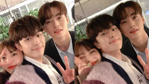 JOY is the team's manager, while Cha Eun-woo and Yoo Seonho are players.
