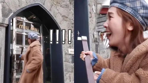 So, she stops in front of a store of one luxury brand and asks the camera operator, "Is it okay for me to shop for a bit?"