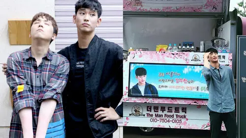 The banners behind him were messages that Lee Hong Gi wrote to Kim Soo Hyun and the production team of his current drama 'It's Okay to Be Not Okay'.