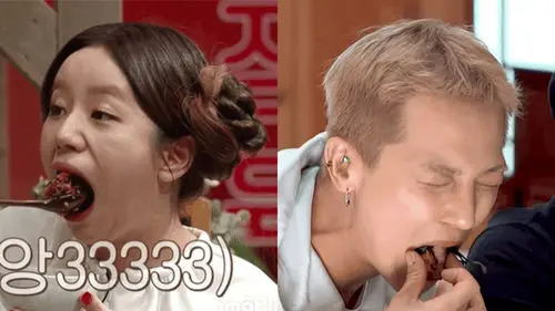 It was that Hyeri could open her mouth really widely while MINO only could one third of how much Hyeri could open it. Hyeri could fit a massive size of food in her mouth without any problem.