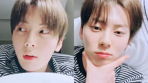 In these photos, MINHYUN was not on stage but in his cozy room with comfortable clothes on.