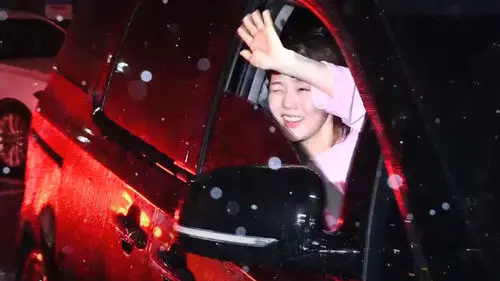 As she sees many fans waiting to see her, she smiles and waves at them.