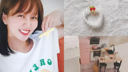 Then, she shared a photo of a beaded ring that had a shape of cherry as well as a tiny kitchen of a dollhouse.