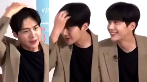 Kim Seon Ho's hair was neatly styled at first, but as he did this, it went a little messy.
