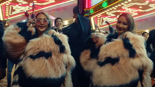 CL wears a pair of colored glasses and luxury fur coat, and walks into a car while saying, "Hey, me too."