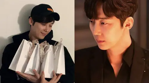 In the photos that the agency uploaded along with the notice, Yoon Jong-hoon holds and looks at prettily-packed bags of gifts for fans.