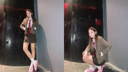 She continued, "You guys remember me wearing a school uniform for 'Another Miss Oh'? This one is quite different to that, isn't it? Look at my '3-striped slippers'!"