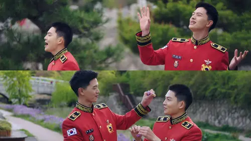 They both had unstyled and short hair, and were in a red military band uniform.