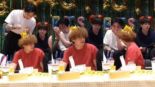 As more and more forks were placed on V's hair, JUNGKOOK burst into laughter.
