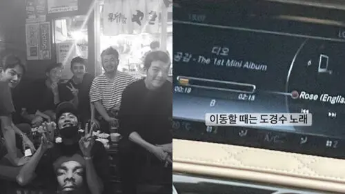The photo showed Kim Woo Bin listening to 'Rose'―the title track of D.O.'s first solo album 'Empathy'―in his car.