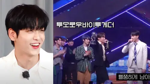Jaejae said, "Do you remember the time when you were on stage with BTS after they won first place on a music show? You stayed during their encore performance."