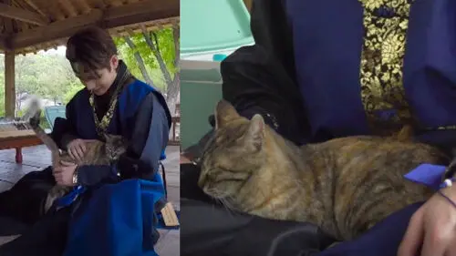It seemed the members' suspicion was not V's primary concern though, because he headed straight to the cat and began to pat him.