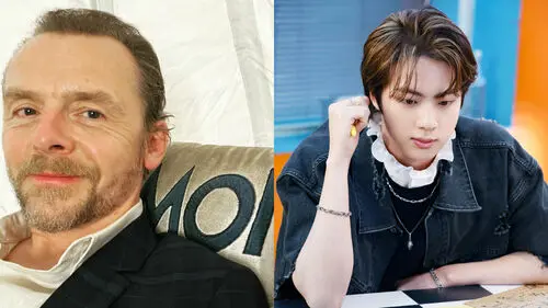 They continued, "It looks like JIN is waving to us with Simon Pegg. Also, the surprising fact is Simon Pegg just sent us this photo."