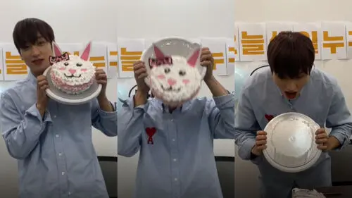 SANGYEON said that he wanted to turn the cake into a face of a cute bunny.
