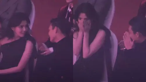 Not long after the event started though, Yoo Ah In suddenly turned to Han So-hee and said something.